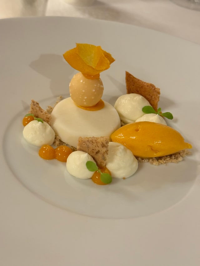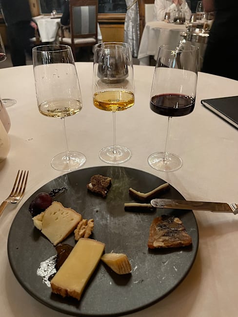 Amazing experience. My wife and I each had the four course menu; both of us had the Alt Gaottus (Quail egg, corn salad, jerusalem artichoke), the Ziger-Gnocchi (smoked trout, trout roe), and cheese course. I had the Veal Shoulder and she had the filet. Each dish was amazing, especially the gnocchi. Both the food and service are worthy of the Michelin recognition. My only fear is that I may have spoiled my taste palette for all future meals!