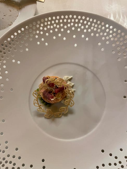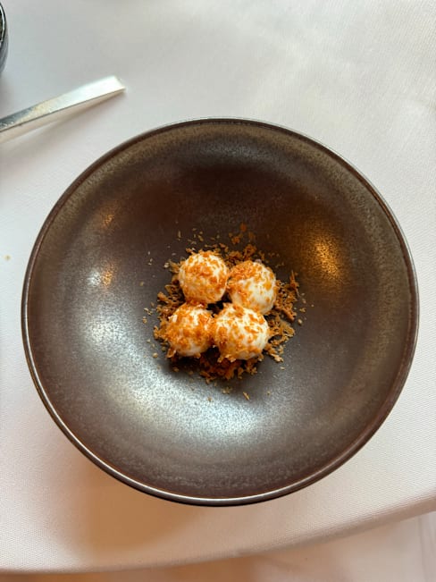 Wonderful welcome, delicious dishes, wonderful wine pairing. Had informed it was for my husband’s birthday and he received a gift with a small cake + candle - perfect little attention. Old school classic restaurant with modern food. Ideal!
