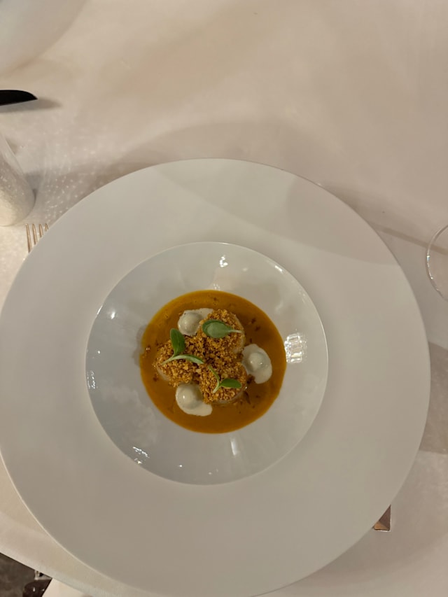 The food was lovely for the most part although I personally wasn’t a fan of scallops being paired with curry. The dessert was impressive and a real treat. The wine pairing was not always on point but each wine itself was lovely.