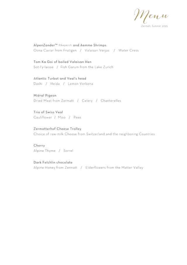 Best restaurant in Zermatt by far. The menus are beautiful and the wine list is exceptional.