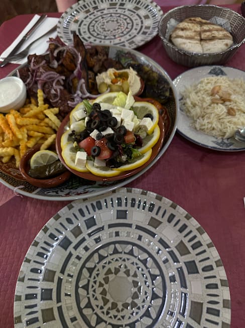 7.5/10The restaurant is nice and has an authentic look. Our starters were very nice, Dolma and Falafel. We had 2 mains which were nice, my only issue was when asked if I wanted rice or potatoes with my Kufta I chose potatoes, when the dish arrived it was with regular frozen chips?? Maybe I should have asked but never expected to get chips!!