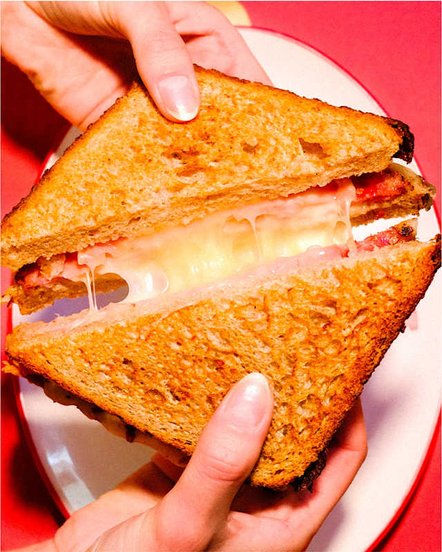 - Pane in cassetta solina e saragolla* con prosciutto cotto e mozzarella***