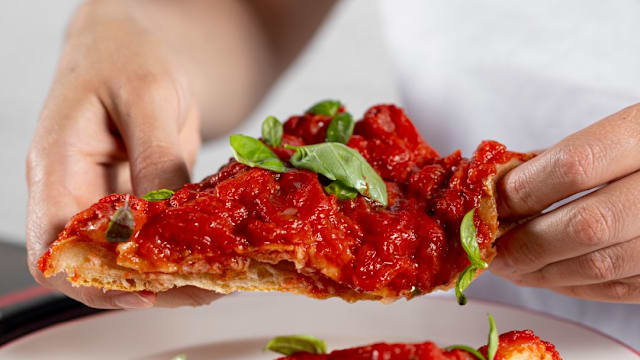 Focaccia con salsa di pomodoro e basilico