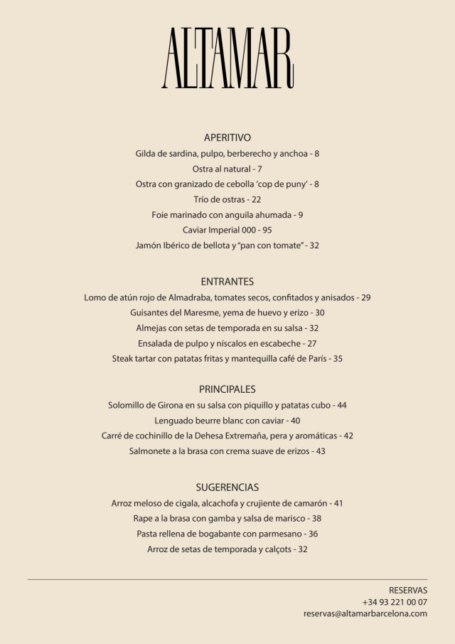 10/10The service, the incredible view, and pasta. I would highly recommend that all visitors to Barcelona experience Altamar.