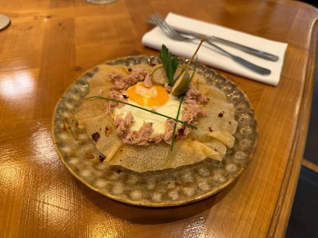 - Fine feuille de brik tunisienne, thon/crevettes, fromage, œuf.