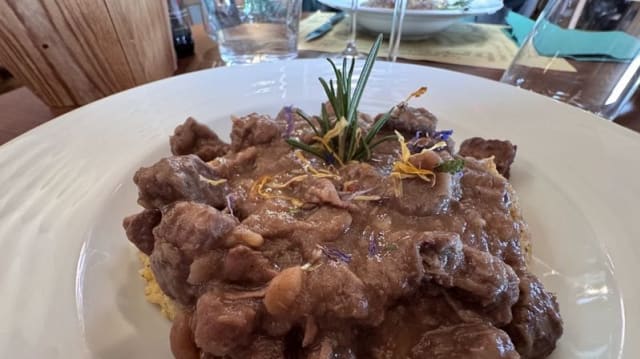 Hamburger di carne valdostana certificata AREV con patate fritte o verdure del giorno.
