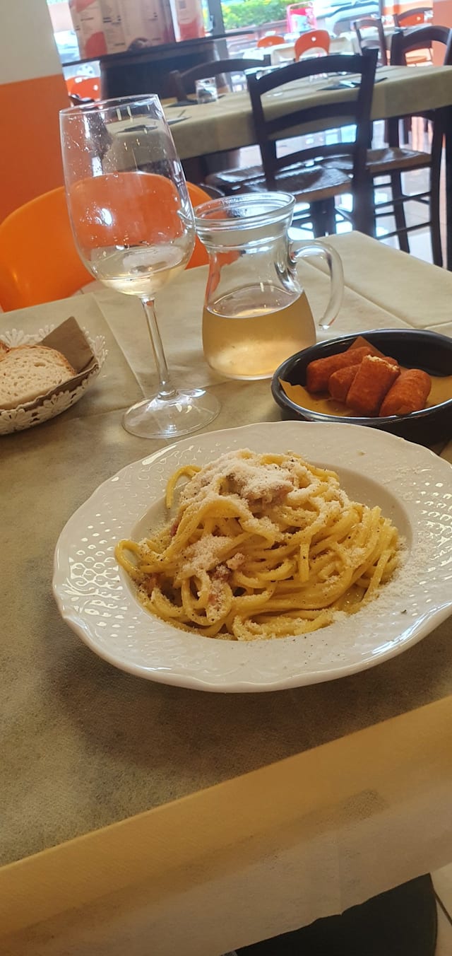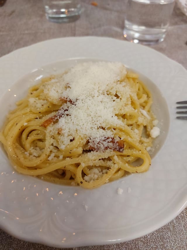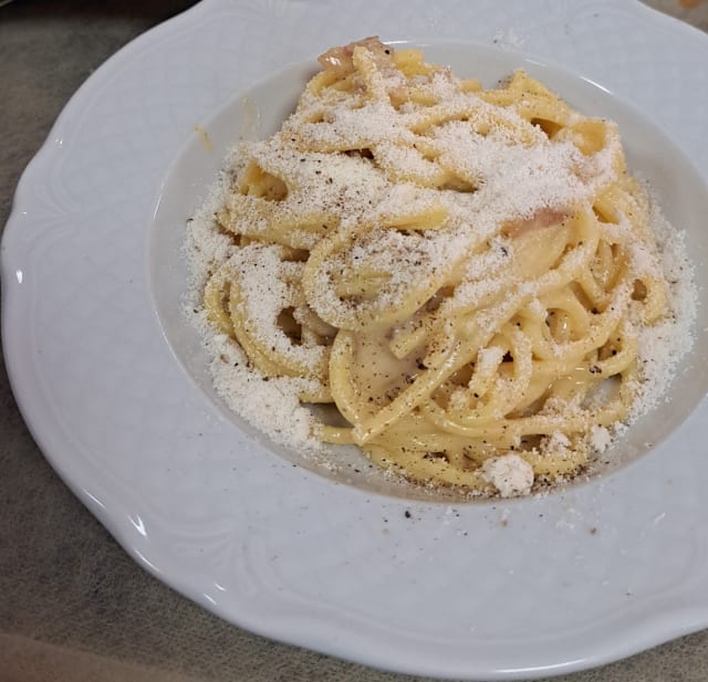Uova fresche, guanciale, pepe, pecorino romano doc e olio extra vergine