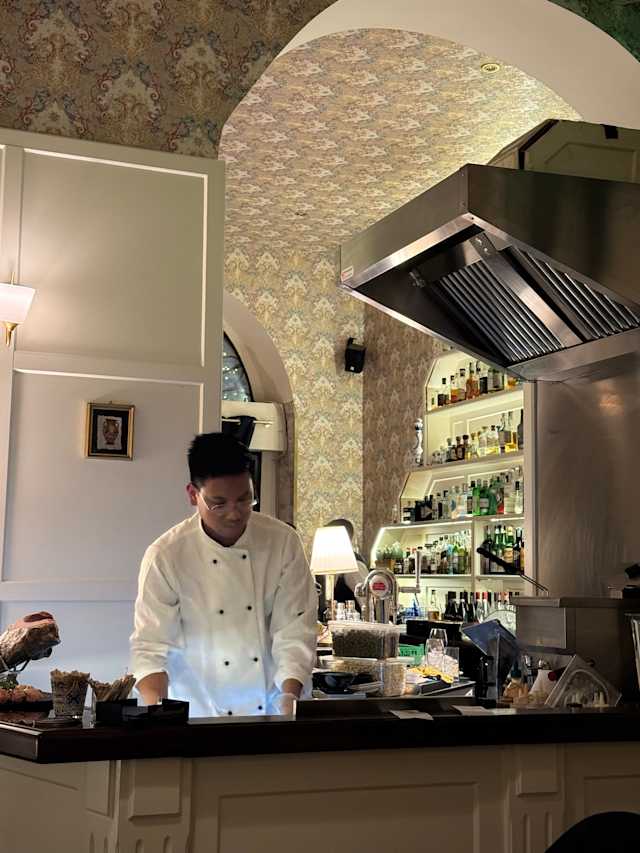 7/10Nice atmosphere. The food was in average OK. We liked the "cicchetti" (small sandwiches), but we didn't like the "gamberi al curry con polenta": they had run out of shrimps so, without asking us, they replace them with scampi. Curry was inexistant and the food was extremely oily.