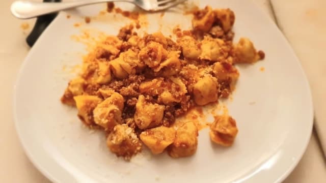 Home made pasta filled with mixed meat served in aurora sauce with tomato and cream