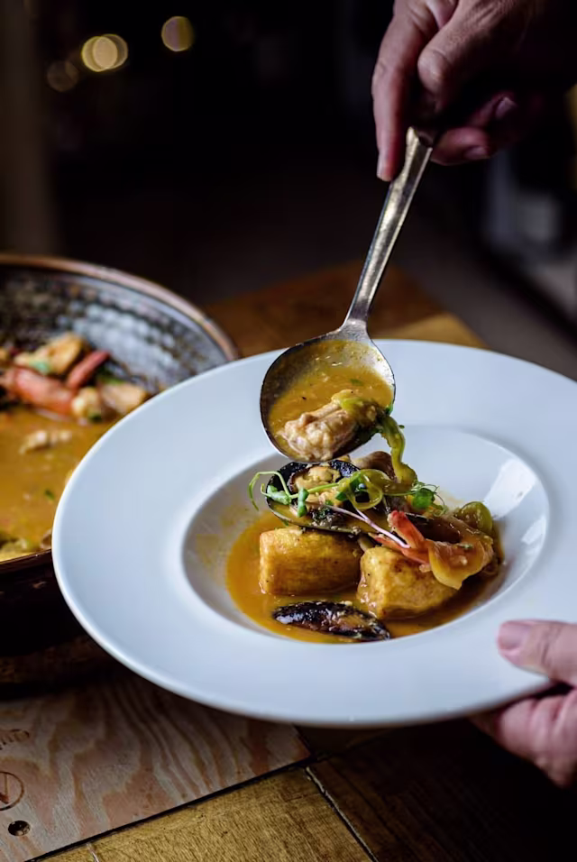 - Caril de camarão e tamboril