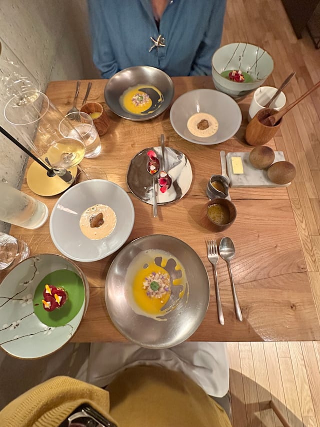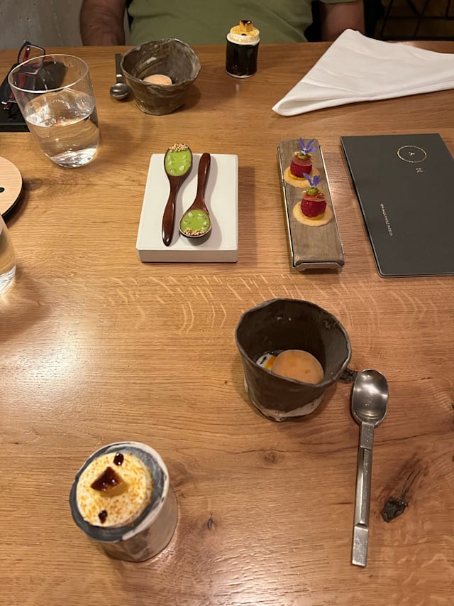 8.5/10+4Unique presentation with every single plate looking like a miniature piece of art! Unusual and interesting in a good sense combination of ingredients and flavors for my Mediterranean inheritance. Loved some dishes but would preferred less plates for each stage. The quantity confused me, and the memory from some unique and tasteful combinations was lost.