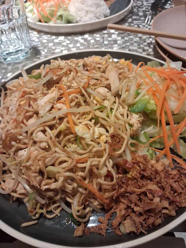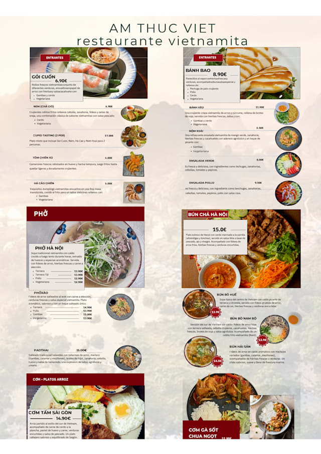Fideos de arroz salteados al wok con carne a elección, verduras frescas y salsa especial vietnamita. Plato aromático, sabroso y con un toque salteado único.