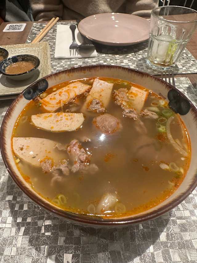 Sopa tradicional vietnamita con caldo cocido a fuego lento durante horas, extraído de huesos y especias aromáticas. Servida con fideos de arroz, hierbas frescas y carne a elección.