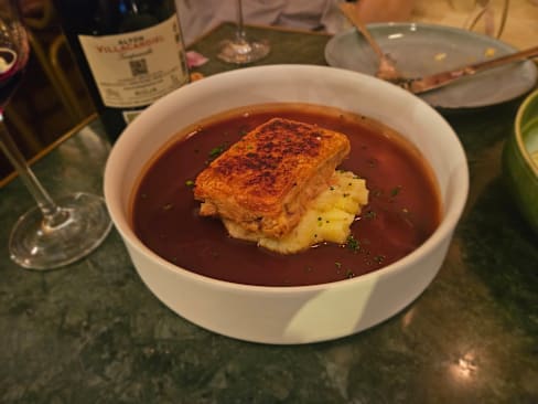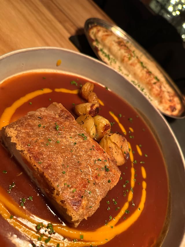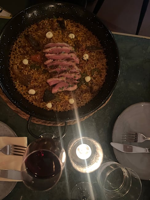 10/10A Memorable Meal at Amades Restobar While visiting Barcelona, our kayak tour guide recommended Amades Restobar—and I’m glad he did. The ox cheek paella I had was fantastic: rich, deeply flavorful, and perfectly cooked. I learned they rotate their paella offerings regularly, which speaks to the creativity of the kitchen—though I only had the pleasure of trying one, I’d gladly return to see what’s next. The low-temperature cod was another highlight—delicate, tender, and beautifully prepared. And don’t skip dessert: the dark beer sponge cake with cherries and coffee ice cream was exceptional. Thoughtful, flavorful, and satisfying—this meal was a true standout.