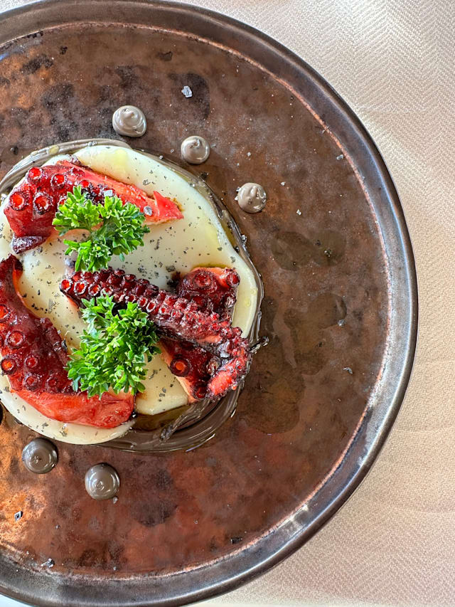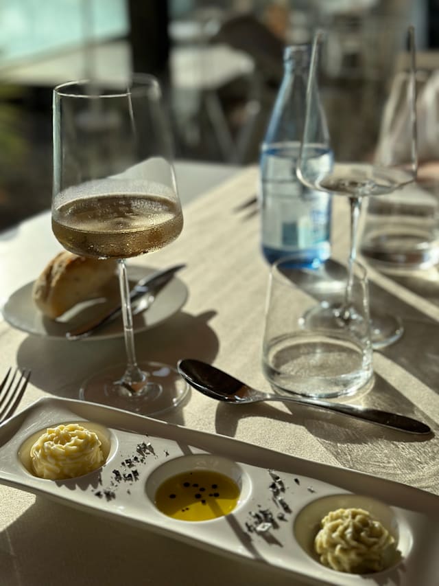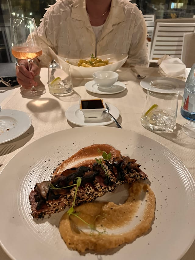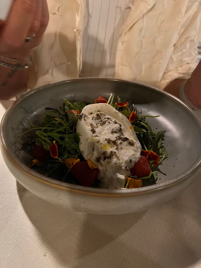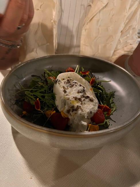 6/10arrived at the hotel, which is very nice and cozy ... finding the way to the restaurant was a bit more difficult because it only says Bar and not restaurant. when we arrived they asked if we had a reservation and because this was done via The Fork it was not registered correctly with them. the reason being that the entire terrace was empty except for 2 tables (which were actually finishing up) so anything but cozy. the dishes were still made as requested .. but in my opinion the main course was made quickly quickly .. and honestly the accompanying "puree" did not look good and had 2 different types of colors and it was also a bit watery as if it were the leftovers that they had put together. furthermore we did get everything from drinks to hot drinks that we asked for. but because we were the only table it was a quick quick meal to get away because the atmosphere was not there at all.