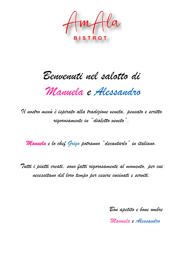 "AmAla Bistrot - Navigli Milano è il salotto di casa di Manuela e Alessandro, dove tutti i giorni accogliamo “amici” e nuovi clienti facendoli sentire come a casa loro. Un mix perfetto per degustare un APERITIVO, assaporare una pausa PRANZO, vivere l’esperienza della CENA in un’atmosfera unica, o se...