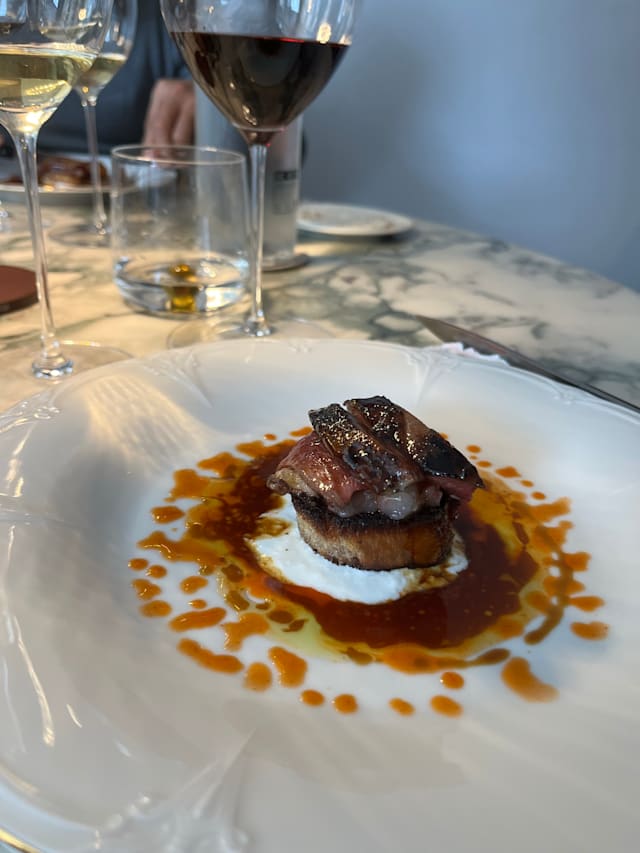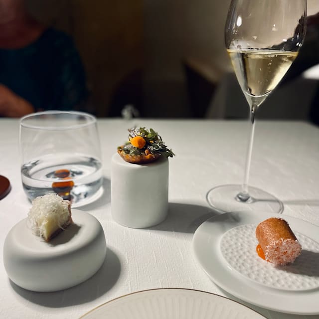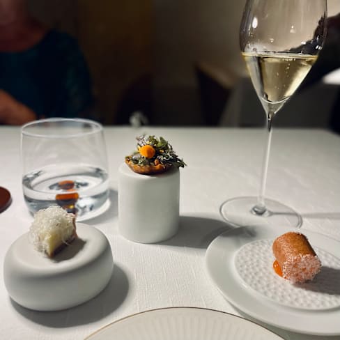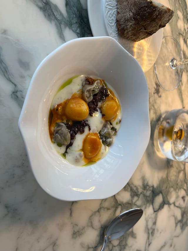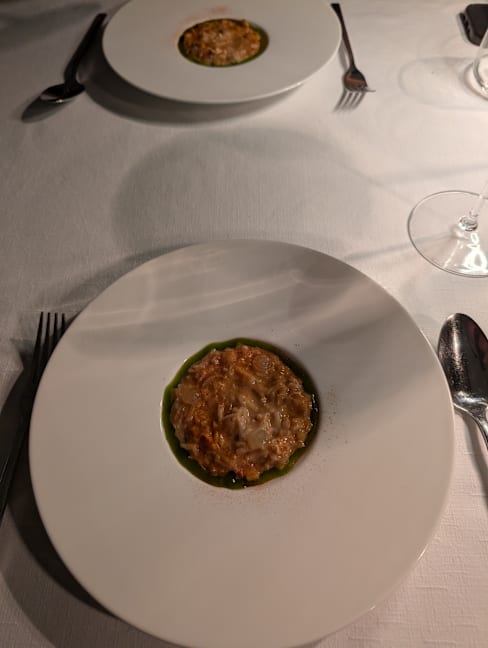 10/10Amalia, is run by duo of Eugenio Anfuso and Cecilia Spurio, this French-Italian restaurant is barely eight months old. Eugenio's the head chef in the kitchen, Cecilia makes the desserts, and both boast pedigrees from three-star Michelin restuarants. I opted for the 8-course tasting menu with wine pairings, and let me tell you, it was a symphony of flavor. Each dish was a masterpiece, both visually and on the palate. Scallop gnocchi with pancetta that melted in your mouth, king crab risotto with the unexpected sweetness of coconut, foie gras pasta that was pure decadence. Cecilia is a magician with the desserts. Federico, the young sommelier and waiter was passionate about the food and wine. His pairings were spot-on, enhancing every bite. Amalia is more than just a meal - it's an experience. Romantic, intimate, and bursting with culinary creativity. This place is destined for greatness. One Michelin star or maybe two are coming.