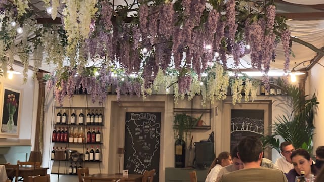 ItalianMeat CuisineMediterraneanPizzeriaSeafoodTraditional cuisineEuropeanPizzaGood for a business lunchGood for familiesLunchRomanticTraditionalTrendyVegetarian dishesDinner showDog-FriendlyWheelchair AccessibleWifi