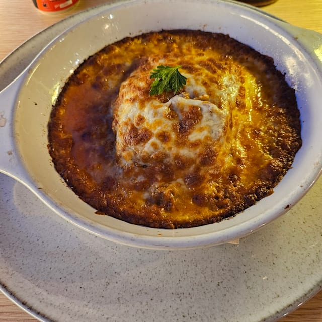 6.5/10We ordered garlic bread, shrimp cocktail and pizza. Garlic bread was really nice, shrimp cocktail was more like a salad.. pizza was nice and thin but lacking any taste. Service was decent, but a bit slow (there wasn’t many people eating). Restrooms we’re missing both toilet paper and hand paper, even though it was right after opening for the day.