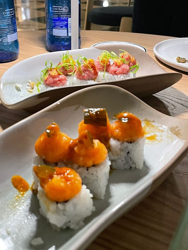 8.5/10Honoustly its in the lobby of the hotel.If I saw all the videos on Instagram..Than its a totally different experience.. It does look so much nicer on video.!!Thats a shame.If I knew before than ....I dont think we went.Not cheap.Gin tonic Seagrams 18€ Sake bottle 45€ .Sushi had very good tastes.Sashimi wow. 1 albarino glass 8€.
