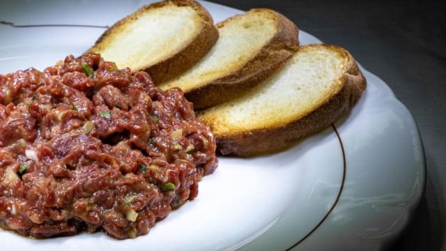 Condita con tuorlo d’uovo, cipolla, capperi, prezzemolo, senape, ketchup, tabasco, salsa worcestershire, limone, sale e olio