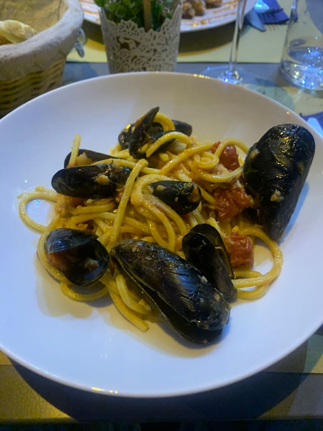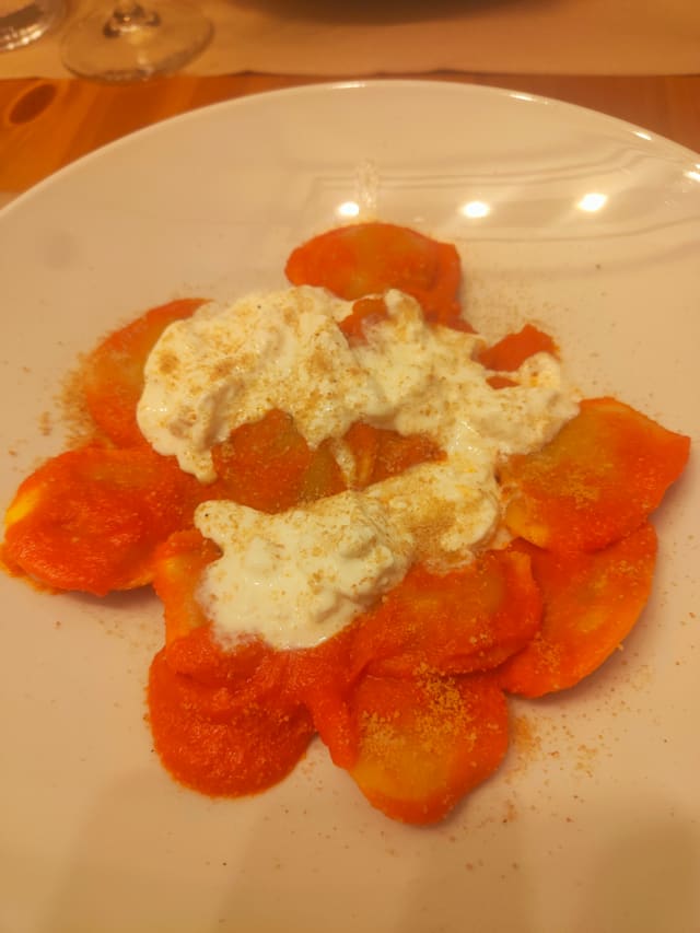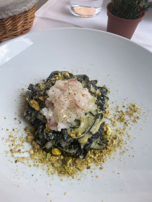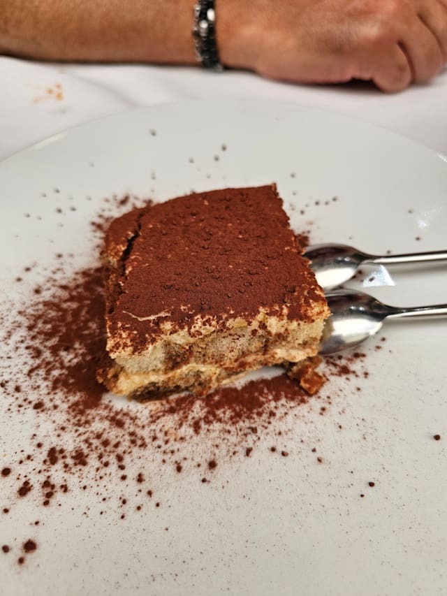 10/10The menu is not large but is very good. we ate at lunch so we can only comment about what lunch was like. it was good weather outside, so for us the ambiance was perfect. we had a wonderful bottle of Pinot Nero spumante, a pasta starter with green peas, a zucchini tort, and a seared tuna dish. everything was really well prepared and was delicious.