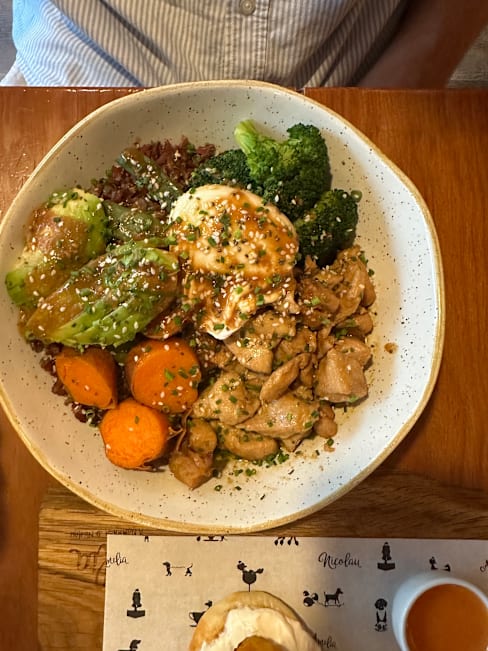 8/10The service was good and we enjoyed the atmosphere in the restaurant, but unfortunately the food was a bit disappointing. The Amelia bowl was substantial, but the chicken was dry and the vegetables were bland and lacked texture. It needed a sauce and some other ingredients to provide texture, such as seeds and nuts. The chicken bowl was also bland.