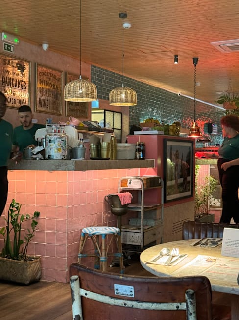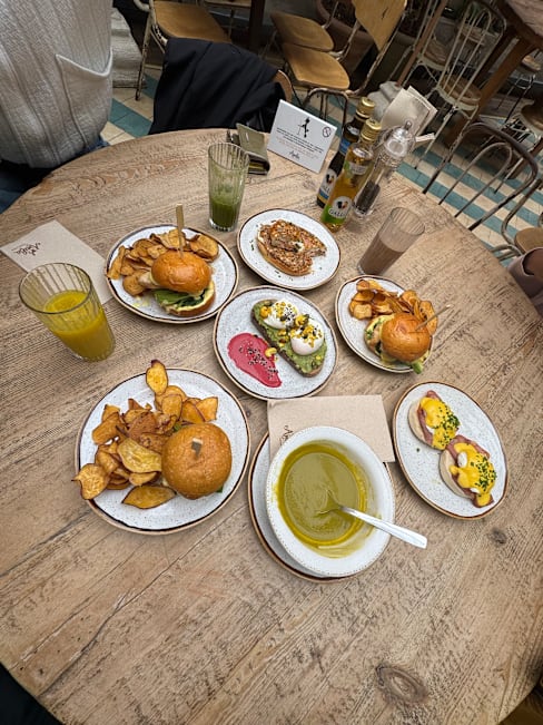 8.5/10Everything was perfect about the food I ordered, I chose to eat Eggs Benedict with a Latte Macchiato. Then I asked for a Bagel Amélie (which consists of a Bagel with Cream Cheese and Smoked Salmon) and a Mimosa, although it took too much to see the Mimosa served (I even finished the Bagel before it arrived) everything was perfect with the food. Surrounding music playlist was a bit repetitive (heard too much of Sabrina Carpenter) and too loud, due to this I could hear the parallel conversations all along since people had speak louder. On and on a good experience and it's worth it because of the five star food.