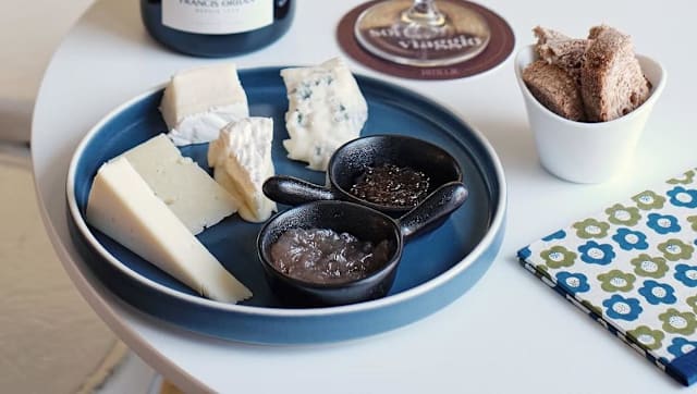 Scamorza aumicata, mostarda di fichi, granella di noci, radicchio.