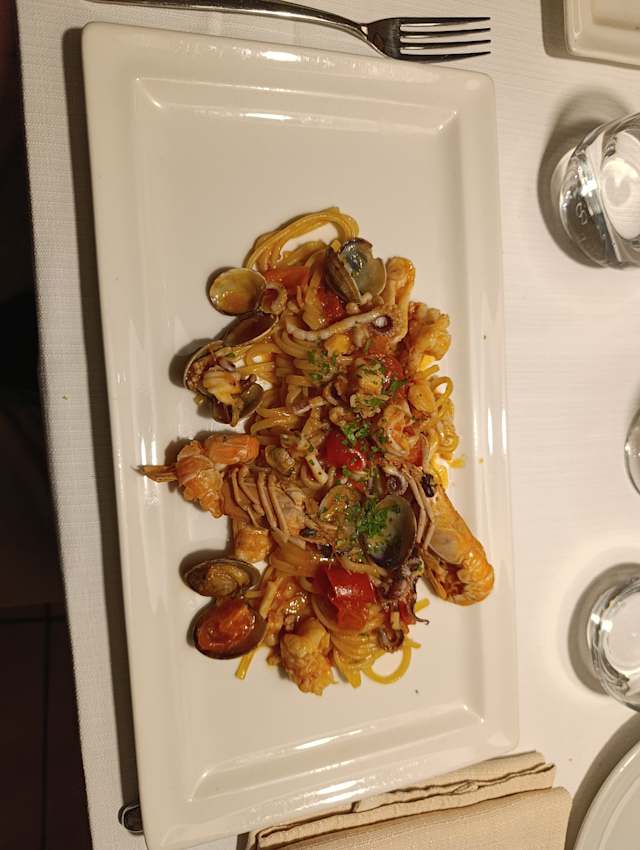 - Aglio, mare e olio con vongole veraci, scampi, gamberi e calamaretti