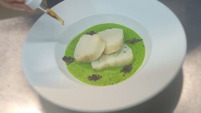 (Bocconcini di baccalà fritto con salsa di papaccelle, moscardini alla luciana, cozze impanate e fritte con crema di patate al prezzemolo)