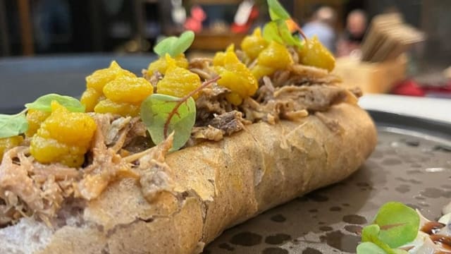 Pulled pork home made con cappuccio, cipolla caramellatae mayo BBQ