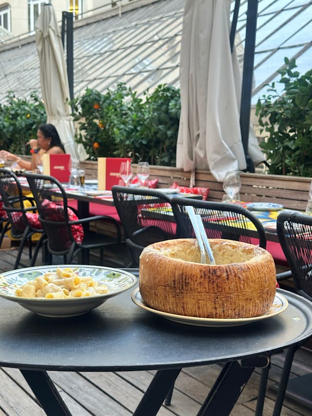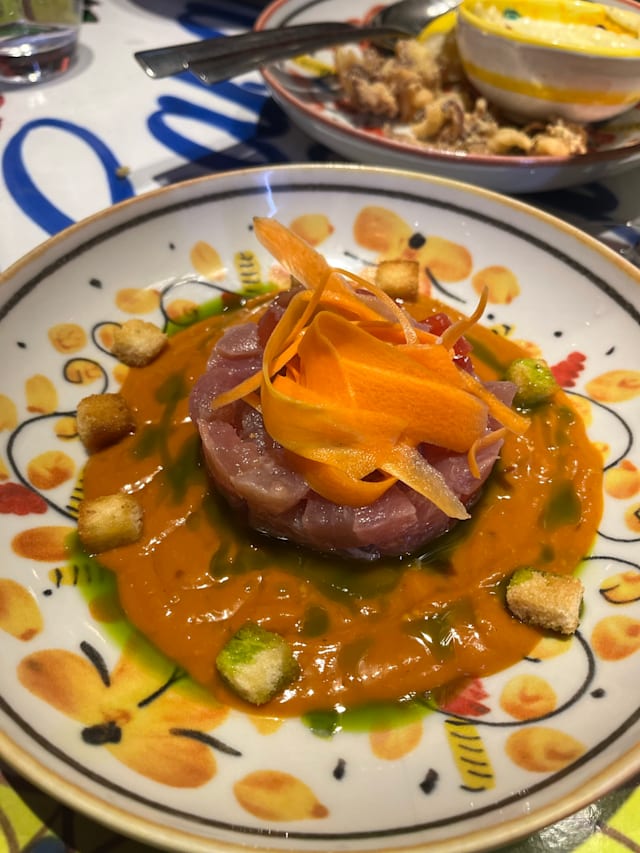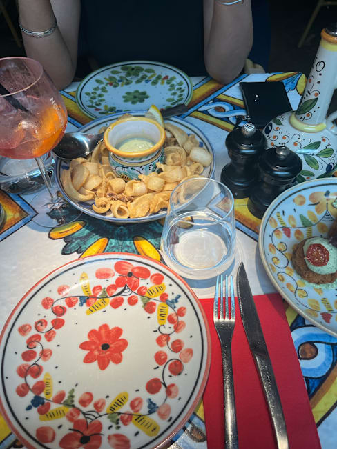 7.5/10All the starters we ordered were amazing but the main dishes (mostly pastas) lacked a bit of flavor. This was compensated by the vibes and ambiance of the place. The location is super central and the place is impeccably decorated. There is music starting 21.30 or so and the place turns festive as it is described with the service staff taking part of the fun atmosphere! Would definitely recommend the place.
