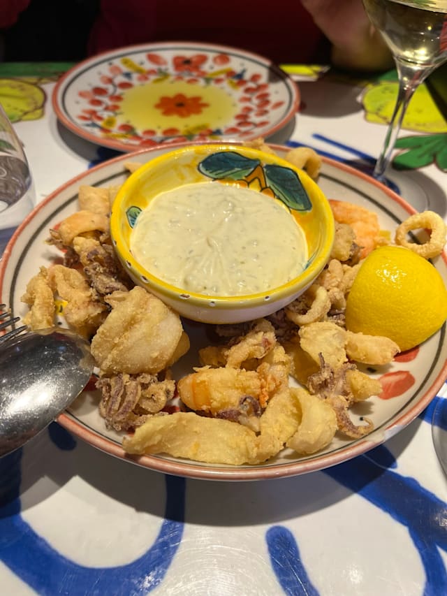 8.5/10The calamari and shrimp as a starter to share was delicious! Quiet terrace in the shade upstairs.