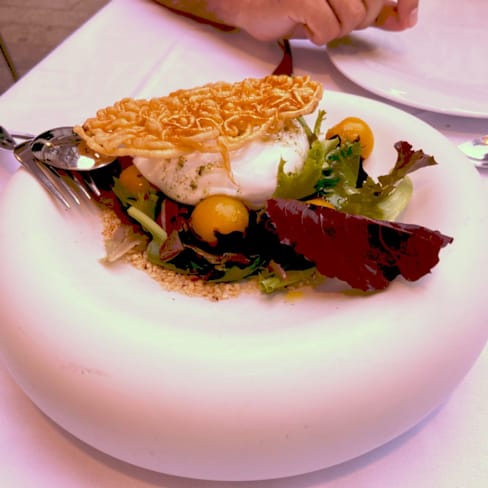 8.5/10it just started to rain. So table all wet.. So we asked to move our table. Better when they did it instead of letting us waiting sitting in the rain. We almost wanted to leave. but we moved. We took a la carta. I don't eat meat so.. menu always with meat.. Nice dishes small.. not warm enough but it s al because of the weather and food came from far. Recommendable restaurant. Enjoyed it very much.. It was a special occasion.. Great memories.