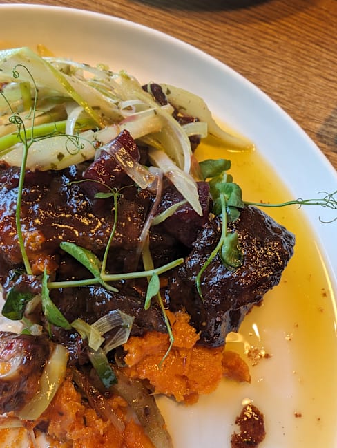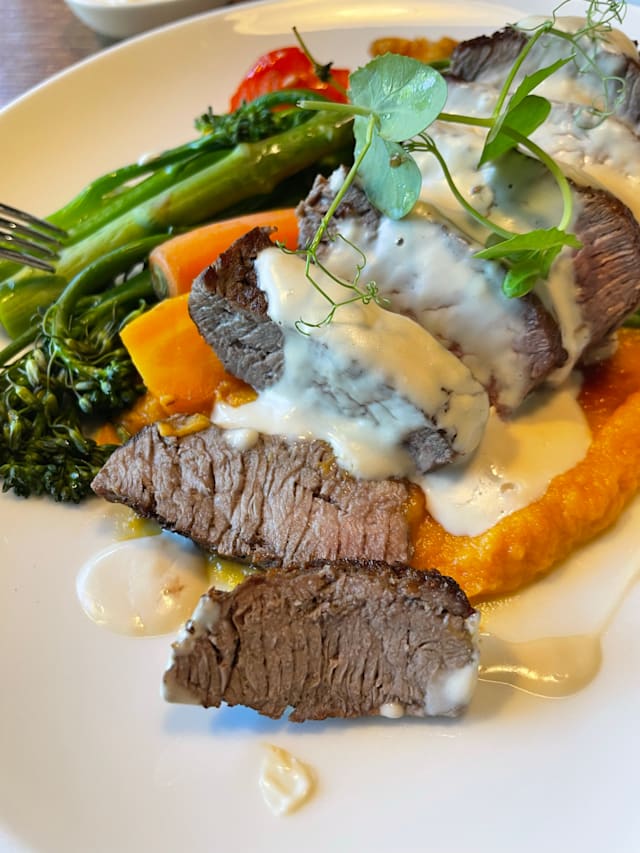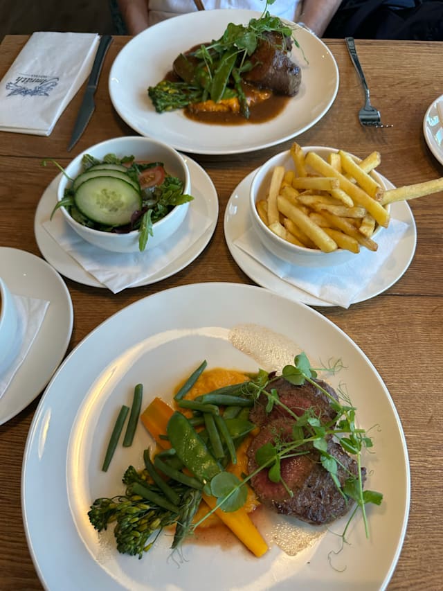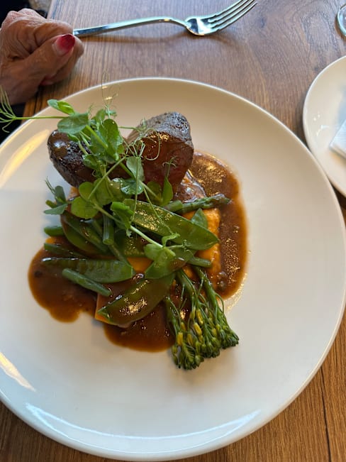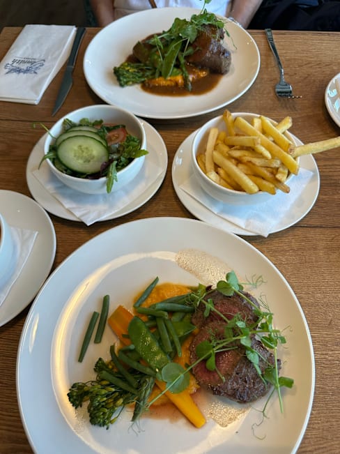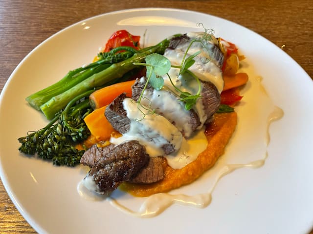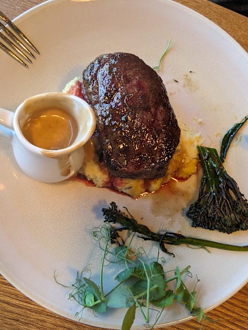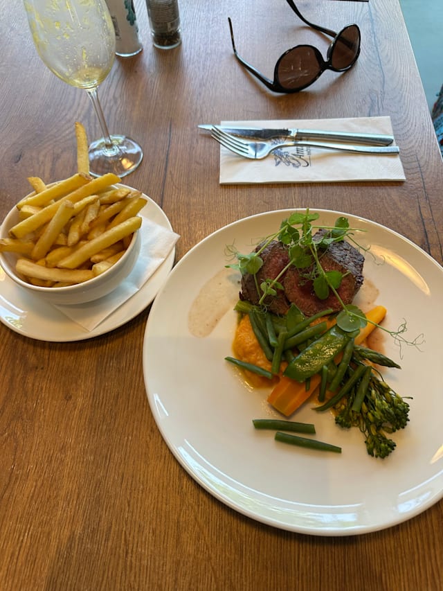 8.5/10+1Food was realy good and very deliscious… we both had a steak with different sauce… but both were top… we asked for medium rare, and it was conform…👌🏽👌🏽. This is the 2nd time we have been here for a meal, and both time… Chapeau… Also Petra the waitress who recognised us, from the other time, I think 8/9 mobths ago… welcomes us again… which is very positive… Overall: eating in Amrath Rotterdam Airport… is TOP!! Both the food as the service is great… Petra see you soon…..🙏🏽🙏🏽