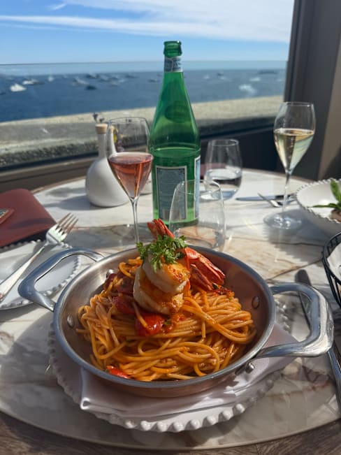 9/10Fantastic location with a great sea view, and very nice staff. Music a bit loud in the restaurant, but appropriate. Food is very good but a bit expensive for what it is. Starters were excellent and generous, main (pasta) was good, but not fantastic.