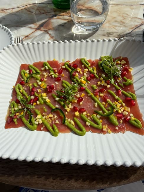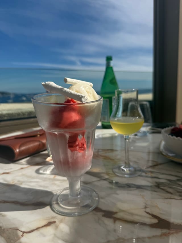 10/10Food and service exceptional. Our Italian server, Salvatore, was engaging, knowledgable and attentive. Food superb. The view of the Monagesque coast was sublime. Wines mostly very expensive but this is Monte Carlo so not surprising.