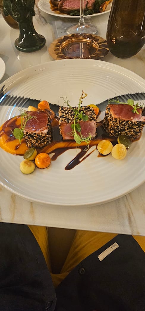 Dear Ronald, we thank you for choosing Amunì and for appreciating the chef's dishes and our dining staff. We understand your point of view and appreciate that you tolerated the liveliness of the group present at the restaurant. It would be a pleasure to have you as our guest again. See you soon The Management