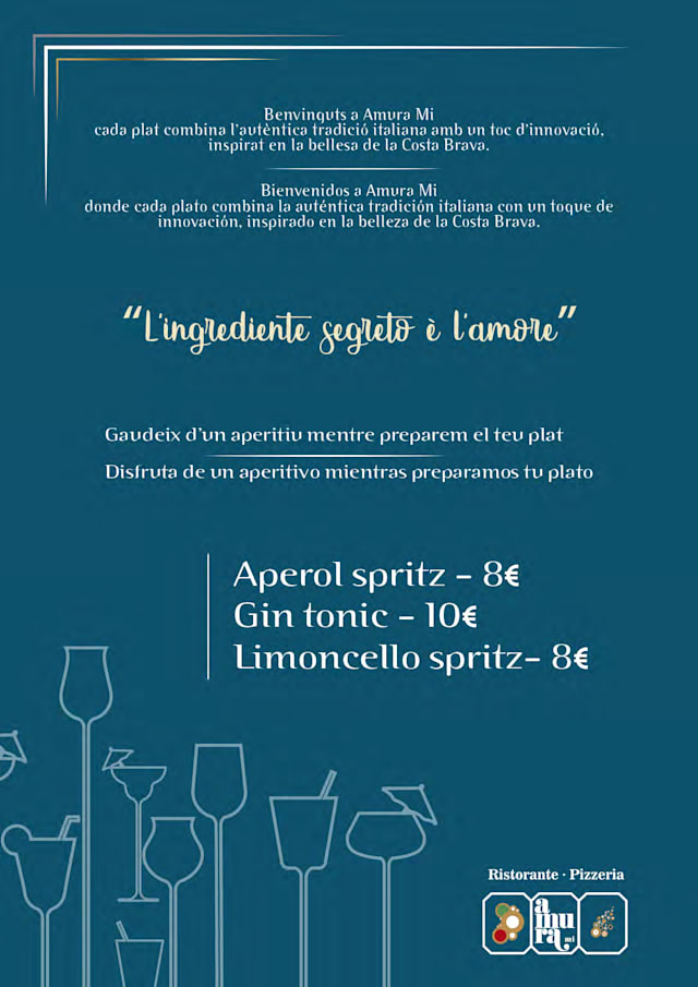 En Amura Mi, fusionamos la pasión por la auténtica cocina italiana con el encanto de la Costa Brava. Nuestras pizzas artesanales, pastas y sabores cuidadosamente seleccionados crean una experiencia gastronómica única. Con un ambiente acogedor y un servicio cercano, te invitamos a disfrutar de moment...