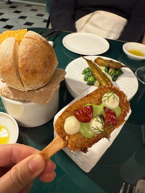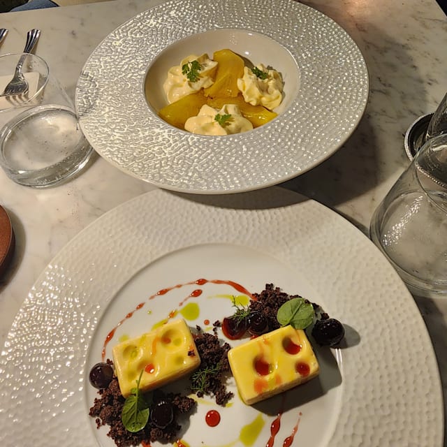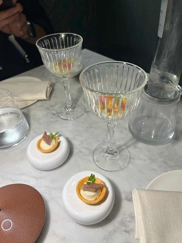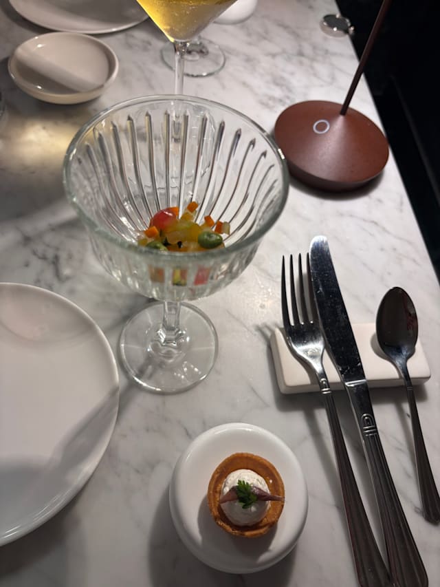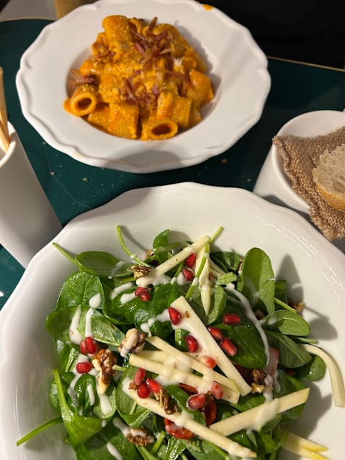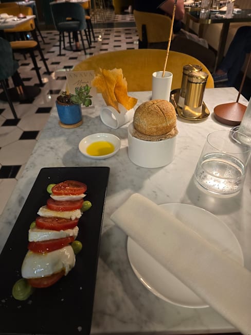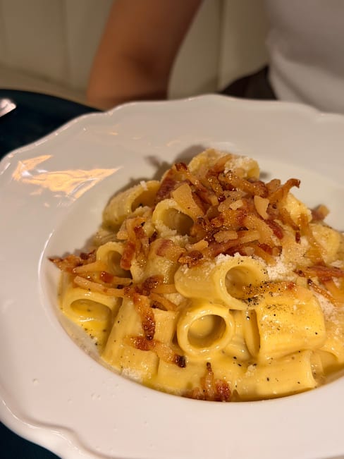 9.5/10+1Very friendly and attentive service, with some excellent complimentary breads & amuse-bouches. Delicious carbonara and amatriciana pastas. We didn’t have space for dessert. Great mid-century modern inspired decor. We thoroughly enjoyed our meal.