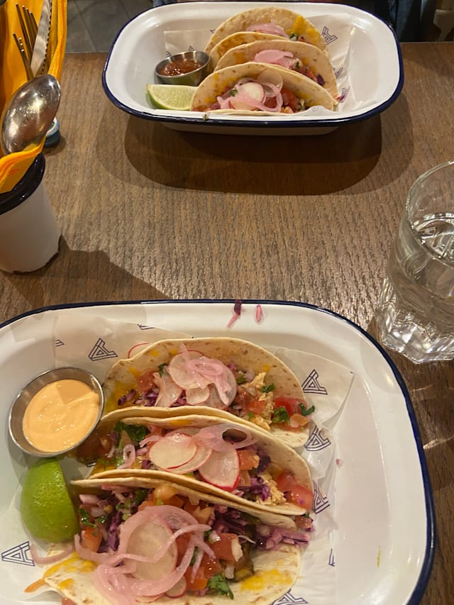 8.5/10Very pleasant meal at Ancho Louise. We shared a plate of dirty nachos for starters and all went for tacos. All very nice. I would have preferred a bit more tequila in my margarita but was nice anyway.
