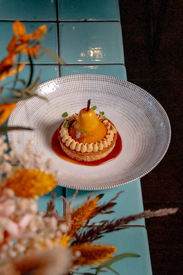 - Tartelette Foie Gras Poêlé / Figues Rôties / Confit de Figues / Espuma Foie Gras / Graines de Courge Grillées / Gel Kalamansi / Réduction Vin Rouge Epicée / Zeste d’Orange