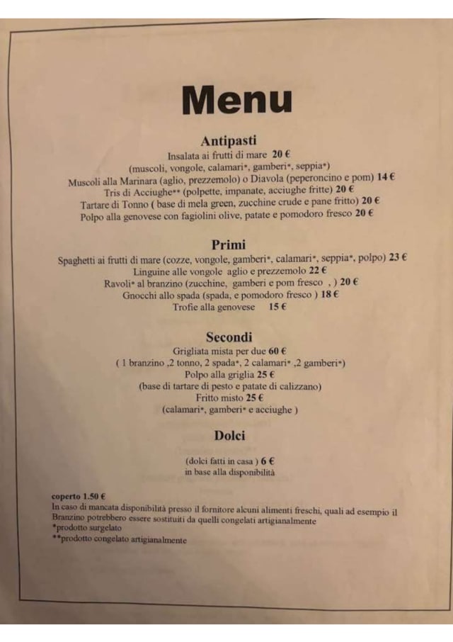ItalianLigureMediterraneanEuropeanGood for a business lunchGood for familiesLunchRomanticSeminarTraditionalWith friendsGluten freeVegan dishesVegetarian dishesChildren's menuDog-FriendlyWifi