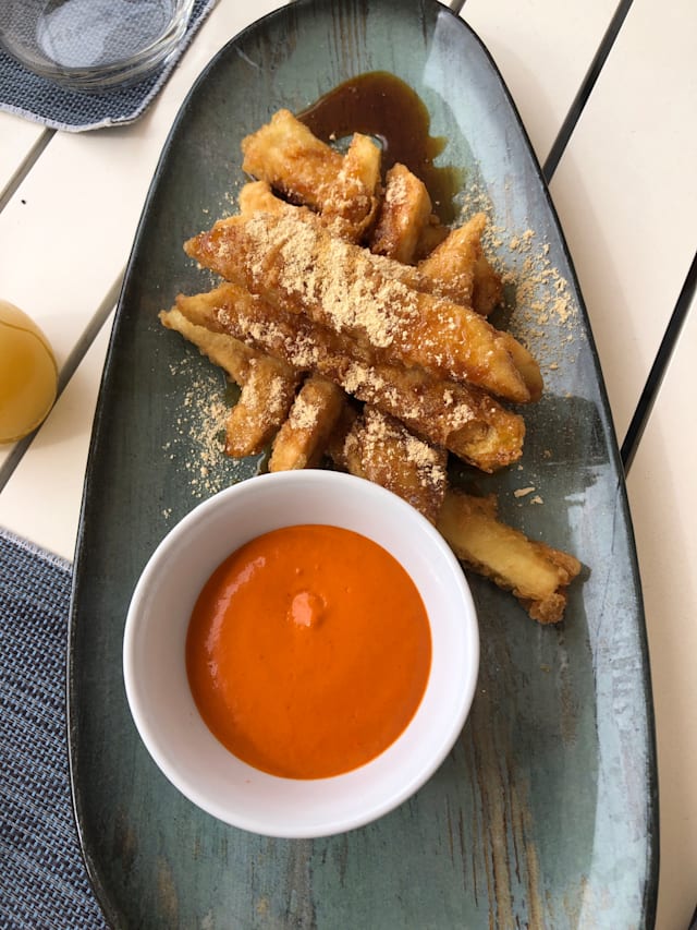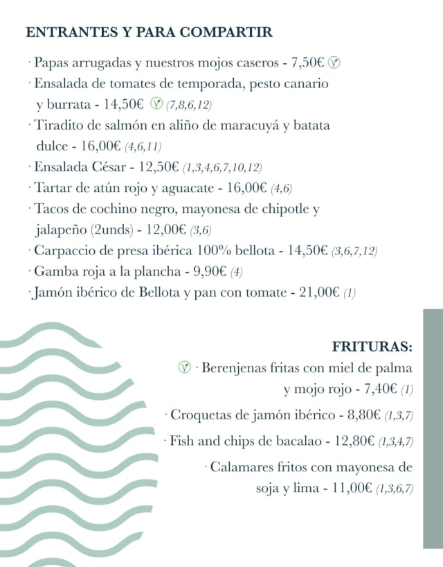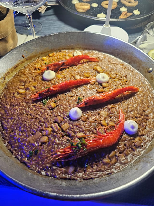 5/10The potatoes 'papas arrugadas' were not fresh. Ugly with lots of spots on it. Our main course, dry seafood rice with cuttlefish, langoustine (1 very dry) and prawns (2 dry) was cold when served at the table. They brought us a new plate after complaining.