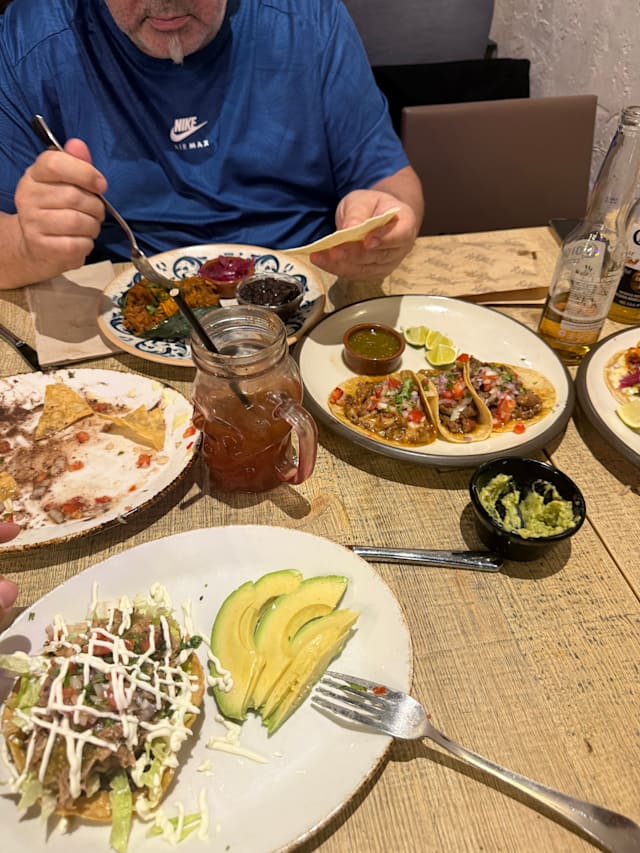 4.5/10To be frank, I cannot understand the hype about this place. The ambiance inside is very modest to be polite. Small plastic flower on the table with a small bottle of Valentine spicy sauce, which is sticky from the outside after its previous guests. Given that we were the first guests after opening, it should have been taken care by the personnel. Now the main story, the food. Everything was soggy, not tasty and for the most part coming out cold. The only meal which came out warm with the chorizo melted cheese dish. The rest - not sure on what detour the plates went, but again we were the first customers of the evening… and the place was empty when we ordered. And before I forget - they promote frozen margaritas but when we tried to order them, we were told they cannot be made as the machine is broken.. So overall its really a 2 out of 5 on all fronts.
