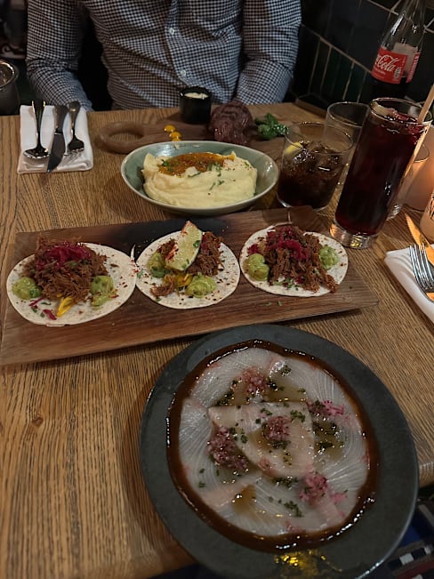 6/10Decorations are fine, noisy as it was full , service was slow, and the food presentation poor!portions were small for the price and nothing special which I could not do better myself. The wine was mediocre.