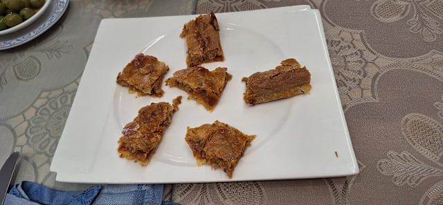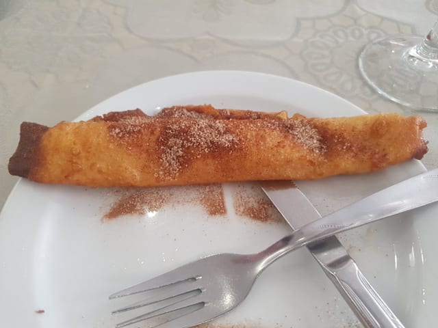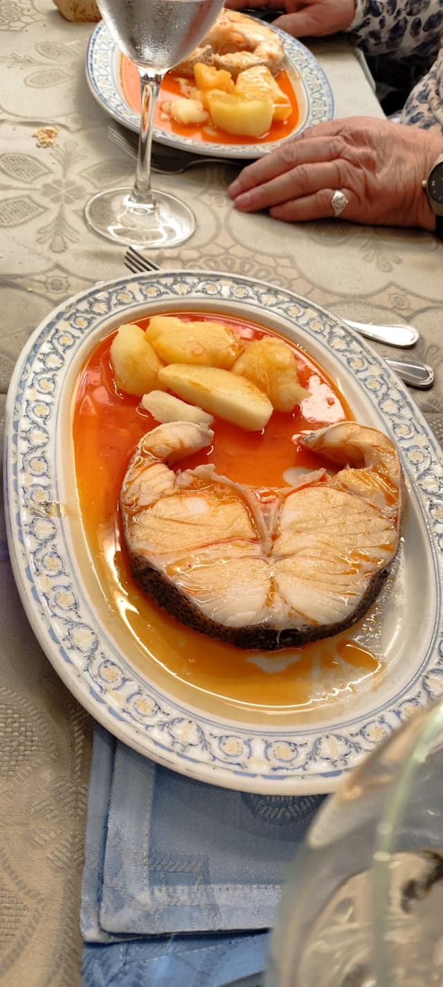Arroz con bovagante, tarta de Santiago con filloas. 33 Euros