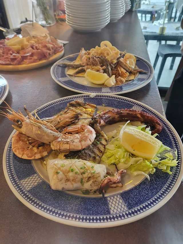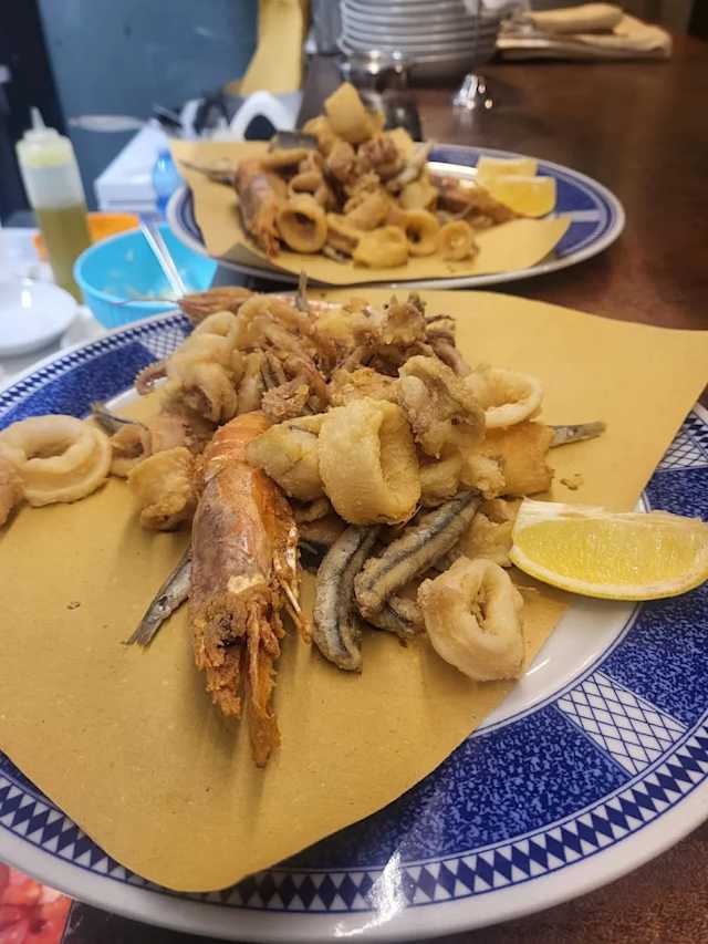 - Frittura di gamberi, totani, acciughe, pesce fresco del giorno