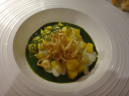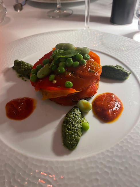 10/10+2When I saw the menu, I was excited to see the creative combination of ingredients. Each dish was so natural and beautiful when it arrived, it looked like a garden of vegetables on the plate. It was delicious to eat, the amount of salt was good, it brought out the flavor of the ingredients, and the sauce was sophisticated. The dessert, apfel strudel, was exquisite. The service was attentive and the chef was very friendly and we had a great time. it was fun.